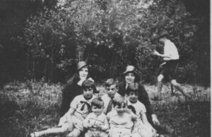 Boven links met hoed Marie Verveen schoonzus van oma en rechts met hoed Jacoba (Co) Verveen (1907) zus van oma Verboom-Verveen.