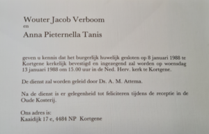 In 1968 she married Wouter Jacob VERBOOM in Unknown